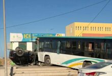 إصابة عدد من الأشخاص في حادث تصادم بين باص طلاب وسيارة رباعية الدفع