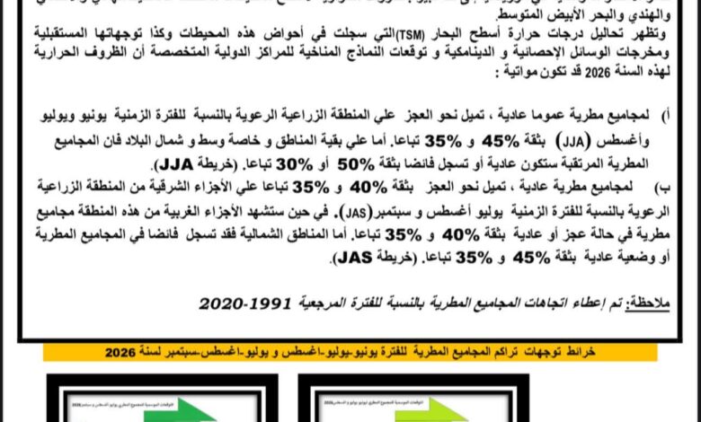 الأرصاد الجوية: طقس معتدل مع أمطار خفيفة مرتقبة ورياح متغيرة على عموم البلاد