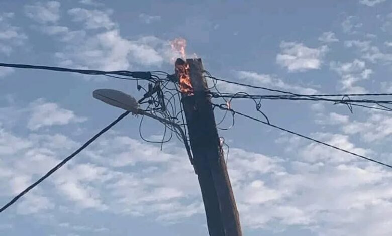 تمبدغة: تماس كهربائي يؤدي إلى اشتعال النيران في عمود كهربائي بأحد أحياء المدينة