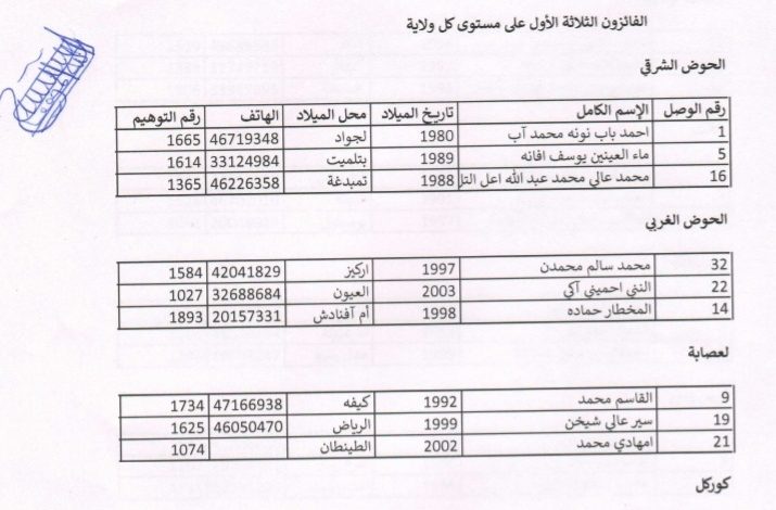 أكمل القراءة »أعلنت اللجنة العلمية المشرفة على تصحيح مسابقة جائزة رئيس الجمهورية لحفظ وفهم المتوون المحظرية، أسماء المتسابقين الفائزين في التصفية الأولى من…