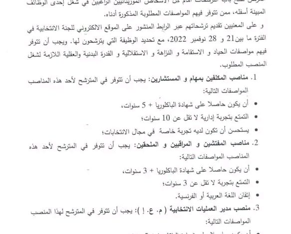 أكمل القراءة »أعلنت اللجنة الوطنية المستقلة للأنتخابات في موريتانيا، شغور عدد من الوظائف على مستوى جهازها المركزي، داعية الراغبين في شغل هذه…