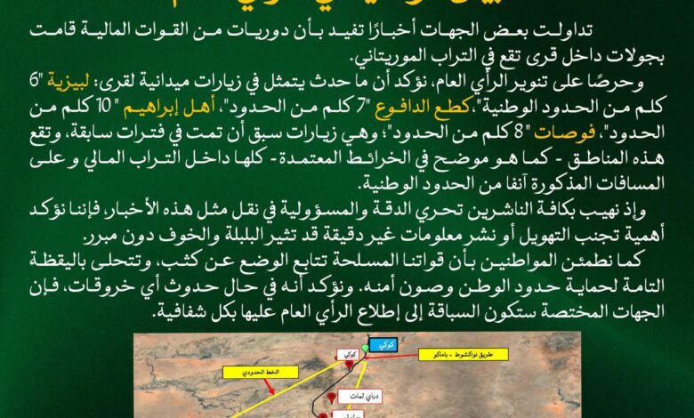 الجيش الموريتاني: القرى التي زارتها دوريات مالية تقع داخل حدود مالي